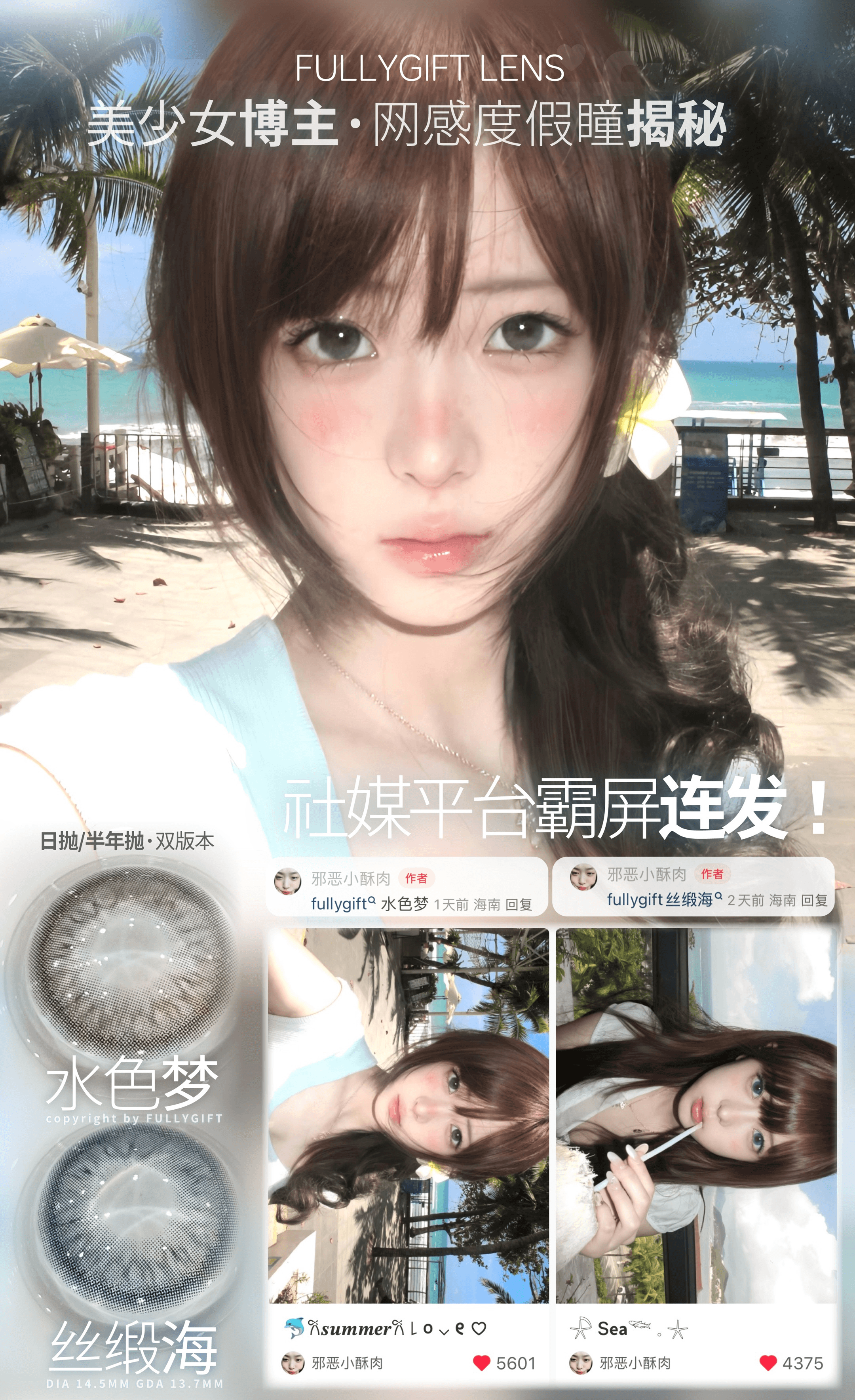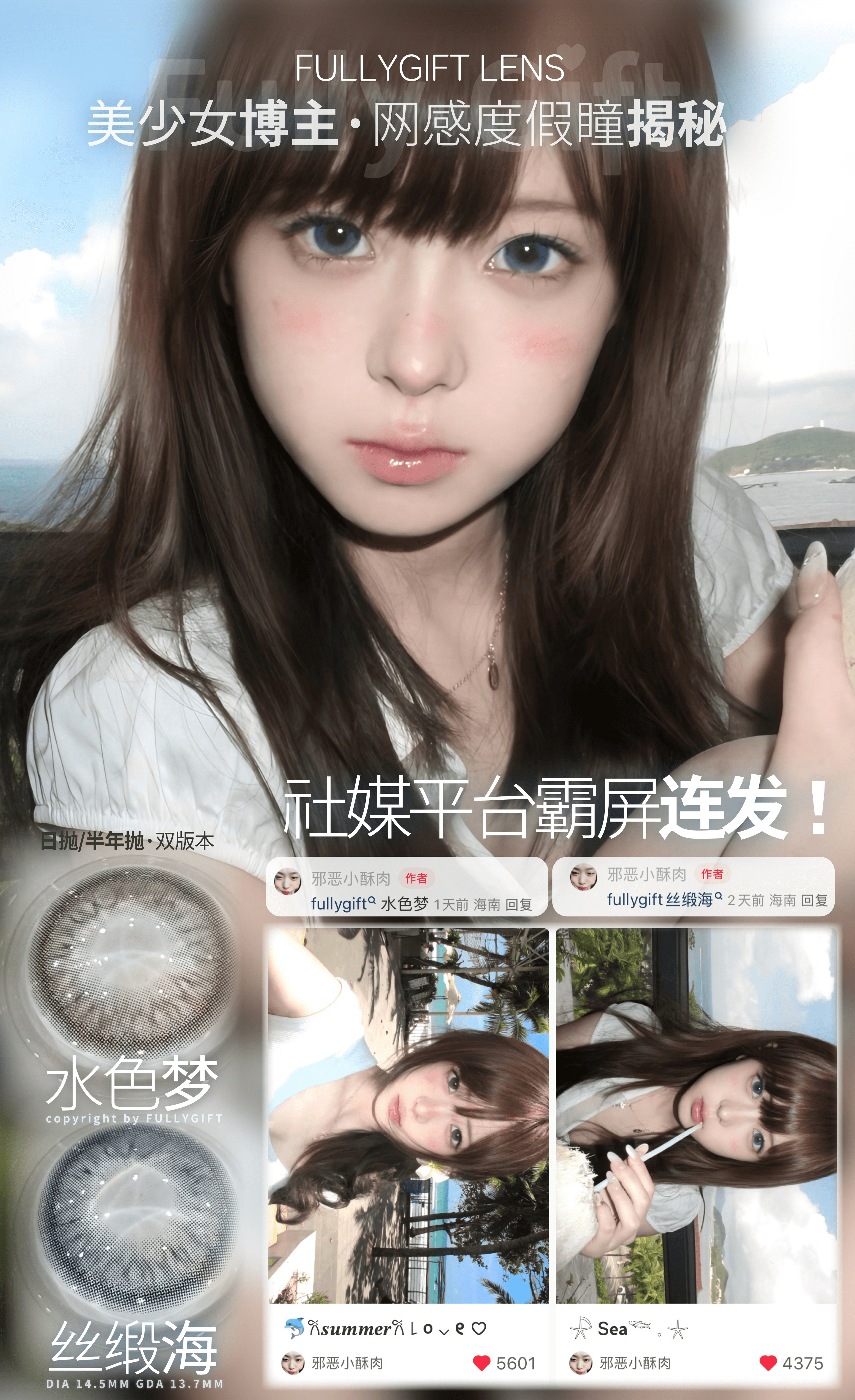 液态透光水蓝,海边氛围蓝瞳!