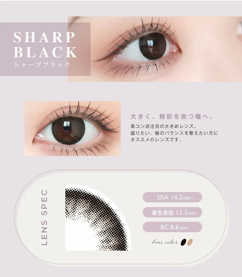 【日本仓】Envie月抛 Sharp Black 月牙黑|14.2|1副2片装|敏感眼最爱