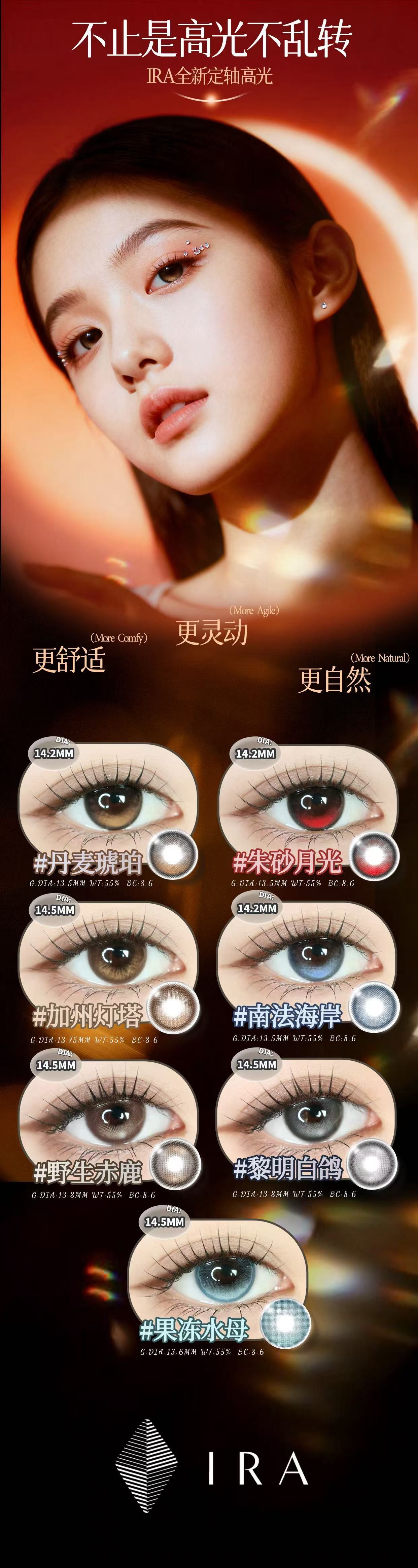 【全球购】IRA 定轴混血 日抛|定轴高光|10片装(丹麦琥珀|加州灯塔|南法海岸|朱砂月光|野生赤鹿|黎明白鸽|果冻水母)