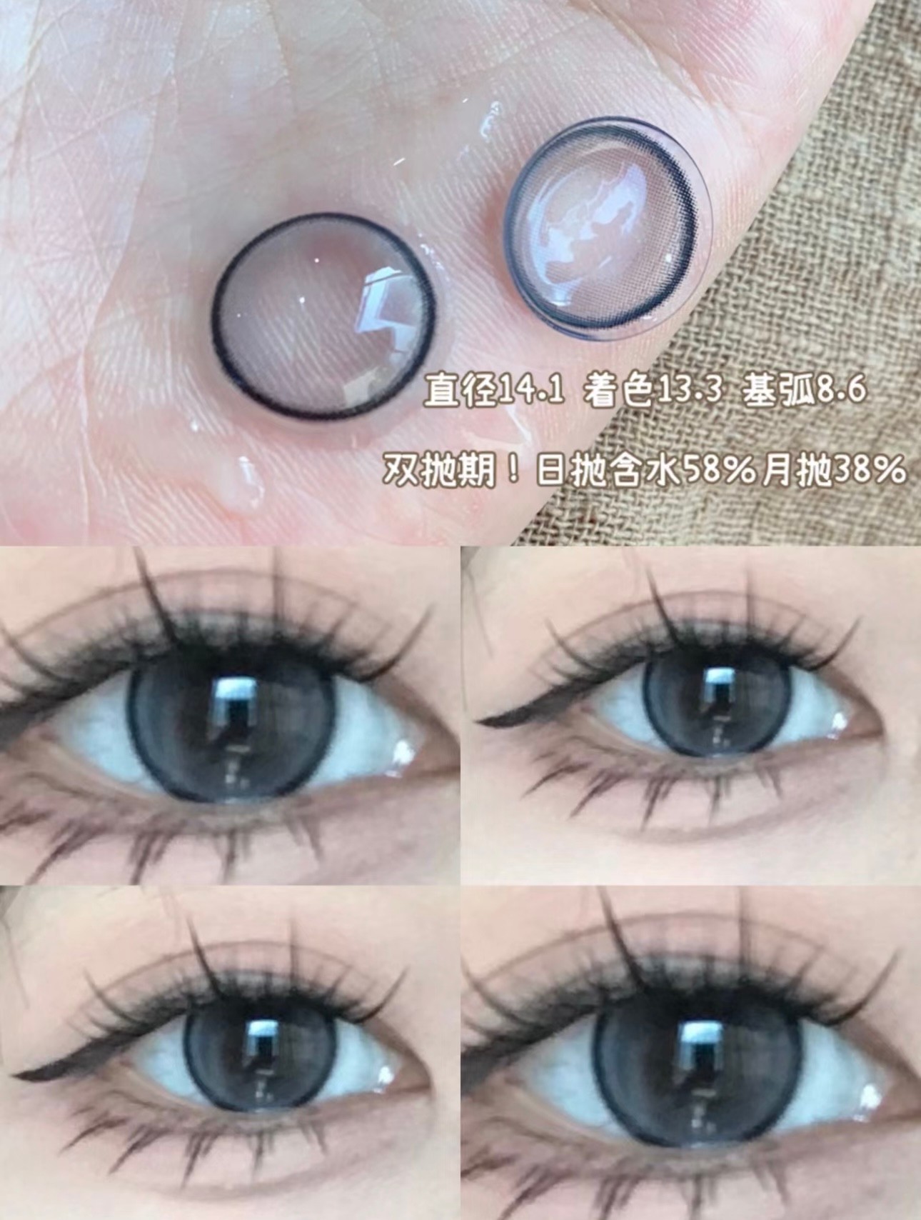 直径:14.1mm, 染色直径:13.3mm,基弧:8.6,含水量:58%,产品规格:20片装