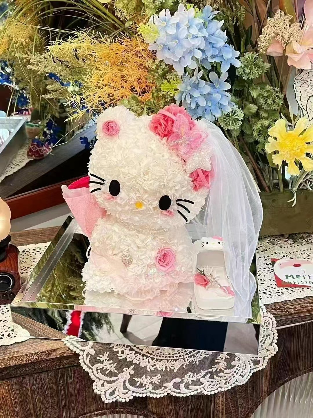 Rosebaby·婚纱版HelloKitty·永生花(可放小首饰盒!)