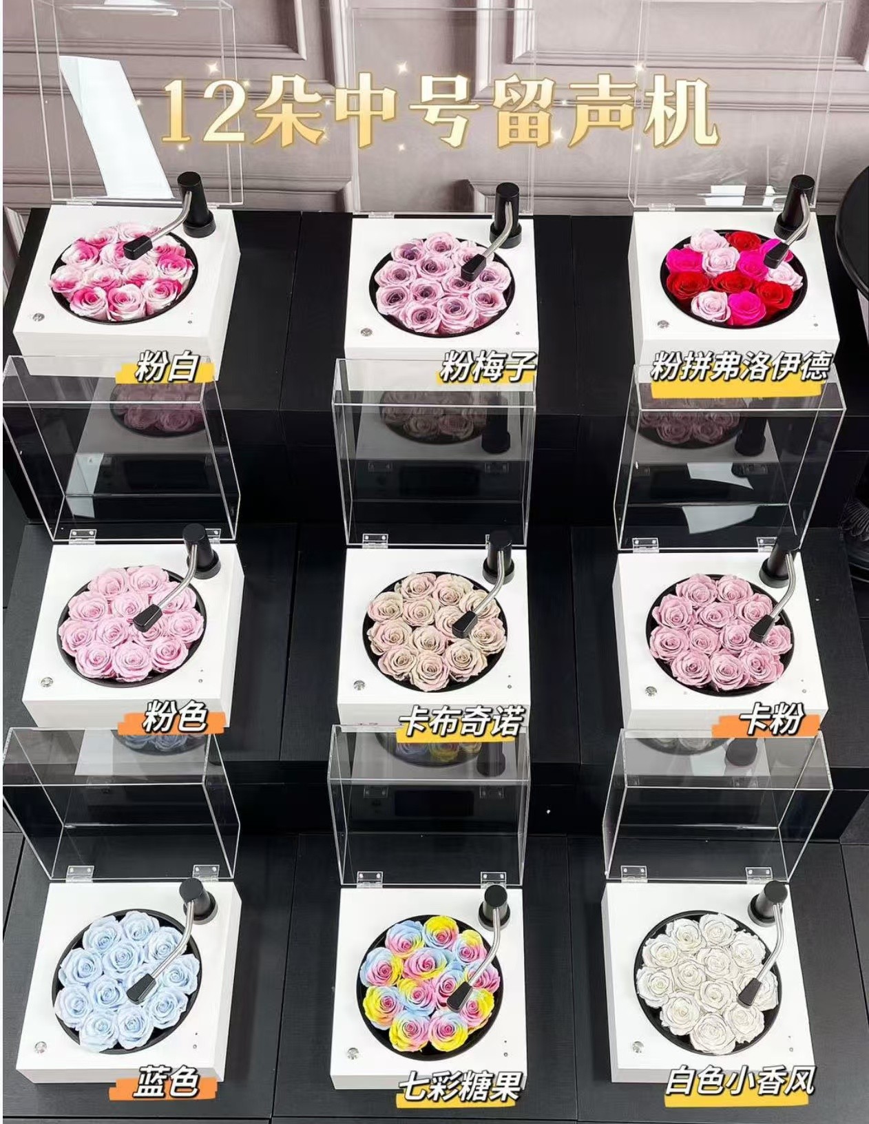 中号12朵玫瑰留声机